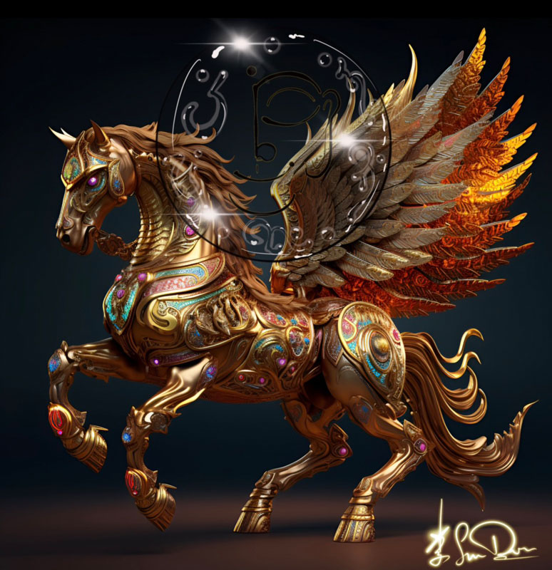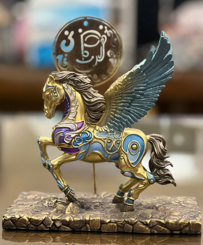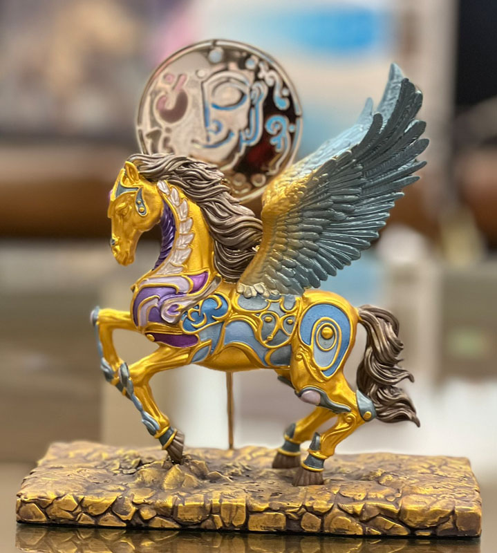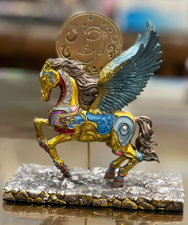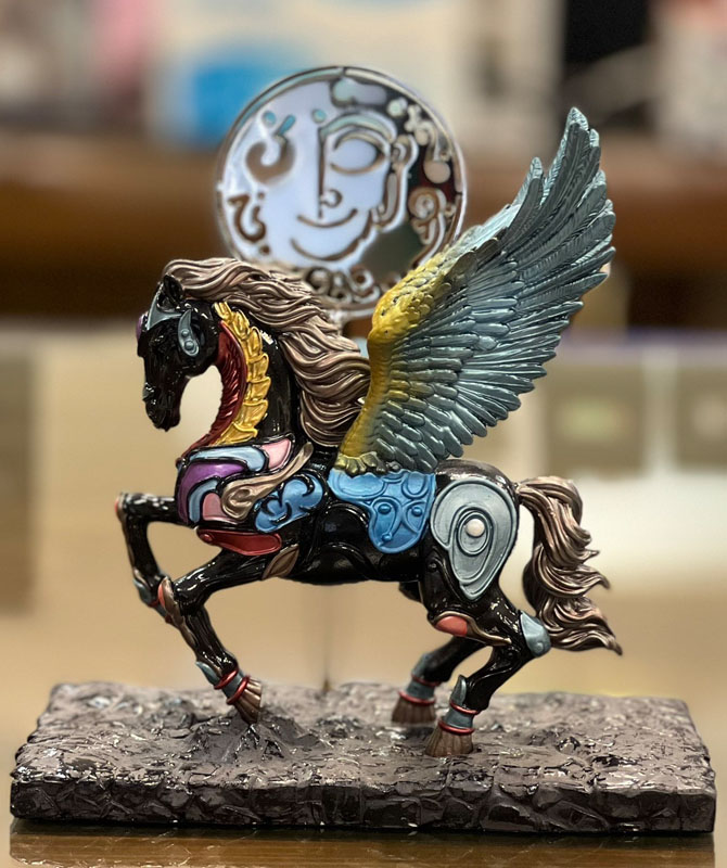 以香華天‧新藝境的寶勝畫廊藝術家李善單教授創作的「七彩寶馬」畫作為本,製作出等比例的立體寶馬。